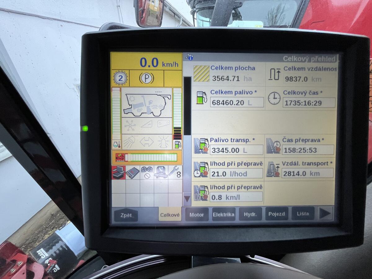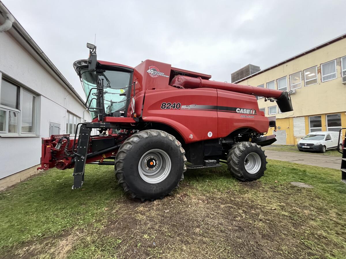 Prodám sklízecí mlátičku Case IH AF8240. Stroj má odpracováno 3600 HA. Rok výroby 2016. Motor FPT Cursor 13 o objemu 12,9 l. Mlátička je vybavena šikmým dopravníkem s hydraulickým bočním náklonem. Jehož zdvihací písty mají nosnost 5800 kg a je vybaven lapačem kamenů. Mlácení i separace probíhá v jednom axiálně uloženém rotoru SmallTube s 40 mlatkami pro evropské podmínky. Rotorová skříň je vybavena mechanicky řiditelnými lištami, které lepe usměrňují tok materiálu. Vyprazdňování s rychlostí 141 l/s. Koncovka výsypníku je naklápěcí. Kombajn je vybaven naklápěcí sítovou skříní o ploše 8,49 m2. Objem zásobníku je 14400L. Mlátička je vybavena drtičem Magnacut s 120 noži. Pojezdová rychlost kombajnu je 30 Km/hod. Sklízecí mlátička je agregována s lištou Case 3050 o záběru 9,1 metrů. , palivo: nafta, možnost financování