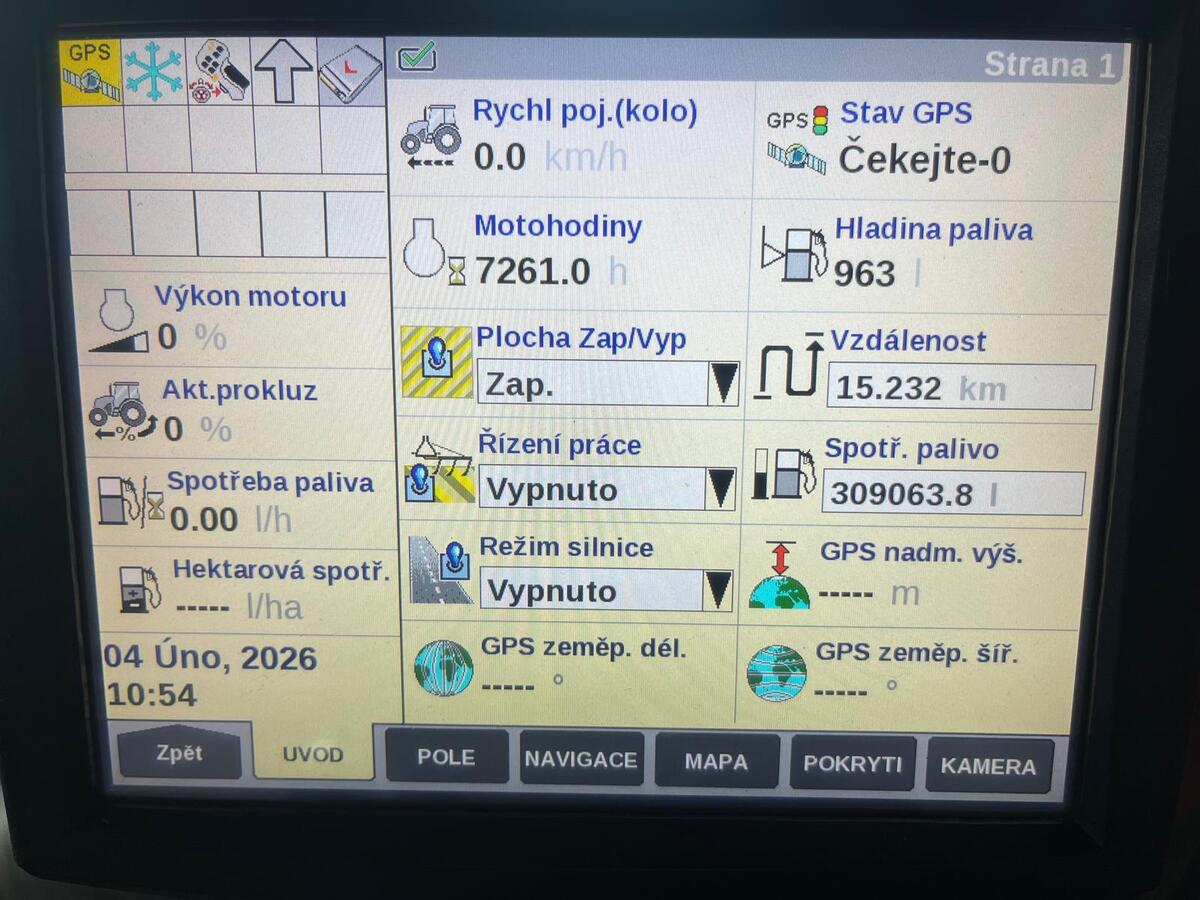 automatická klimatizace, loketní opěrka, odpružená kabina, LED osvětlení, kožený volant, kožená sedačka, vyhřívaná sedačka, radio s bluetooth, monitor, elektronická parkovací brzda, tempomat, sedadlo spolujezdce, časování hydrauliky, radar, vzduchové brzdy, satelitní navigace, systém automatického řízení, souvraťový management