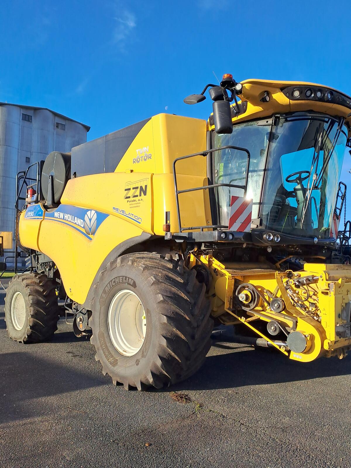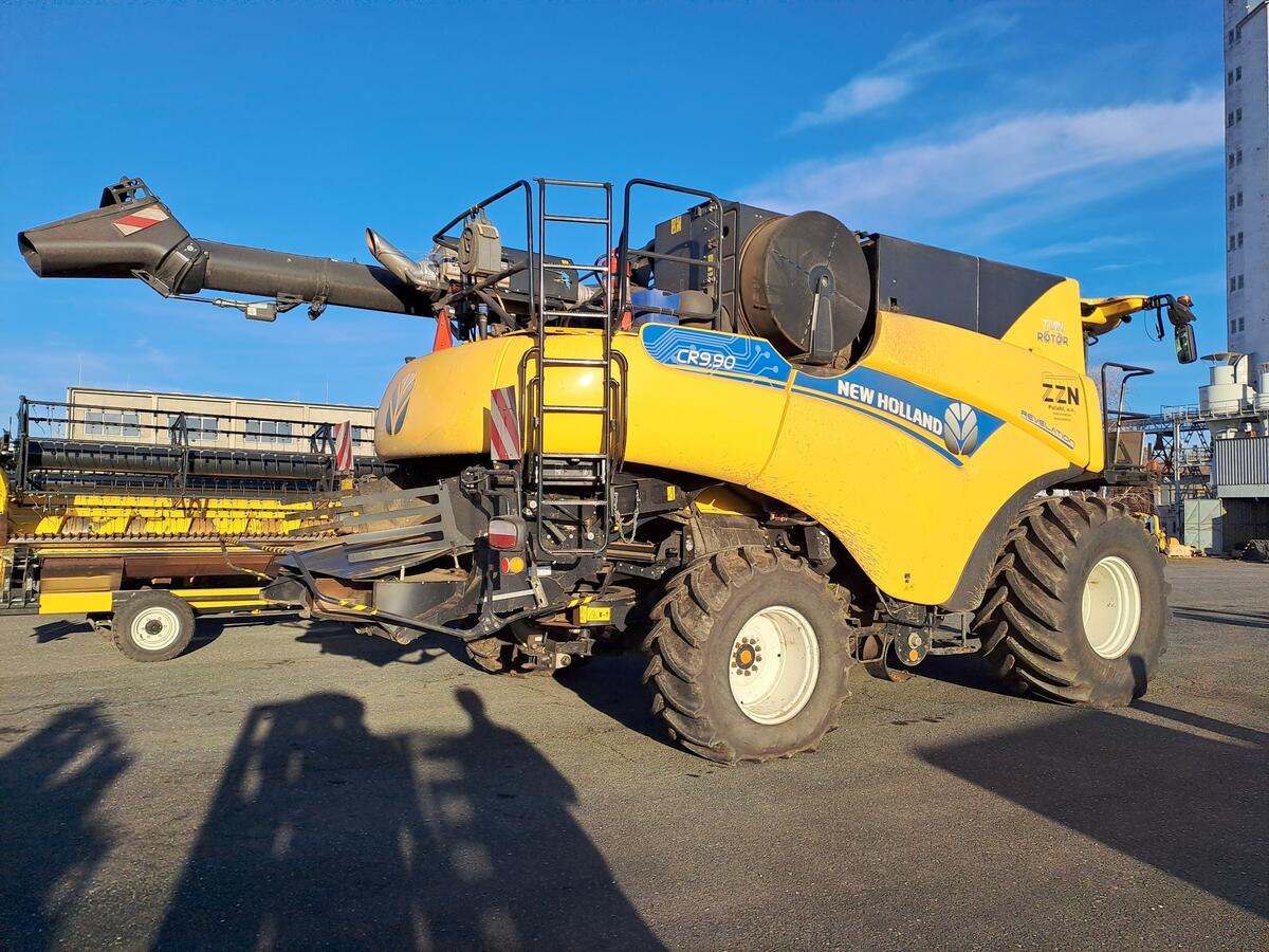 Sklízecí mlátička New Holland CR9.90, zásobník 12500, GPS, výnos, vlhko, autom. systém Intellisense, naklápění šikmého dopravníku z kabiny, LED, sklopná koncovka komínu, pojezd 40 km/hod. Lišta Varifeed 10,7 m, řepková výbava, podvozek s řiditelnou zadní nápravou, palivo: nafta, možnost financování