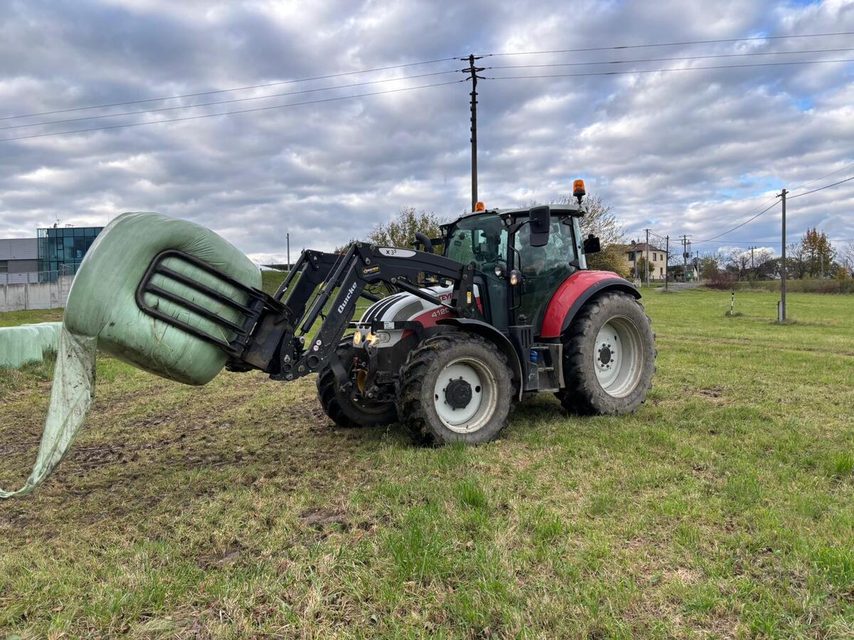 Prodáme pěkný traktor Steyr 4120 Multi. Traktor včetně čelního nakladače Quick 3XS (elektrické ovládání) traktor má 2179 Mth a stále v provozu. Výbava navíc je přední ramena (včetně okruhu navíc) a vývodový hřídel. Na foto není piton fix a etážový závěs, který je také ke stroji. Vyhřívaná sedačka. Doplněné led osvětlení na paket 360. Pevná přední náprava a kabina opružena na pružinách. Převodovka řazení na tlačítko + dá se ještě rozpůlit na želvu/zajíc. V jízdním provozu je 16 kvaltů. Zadní PTO všech rychlostí 540/540E/1000/1000E. Cena bez DPH. Stav viz foto, stav pneumatik/pásů: přední 85 / zadní: 85, palivo: nafta, možnost financování