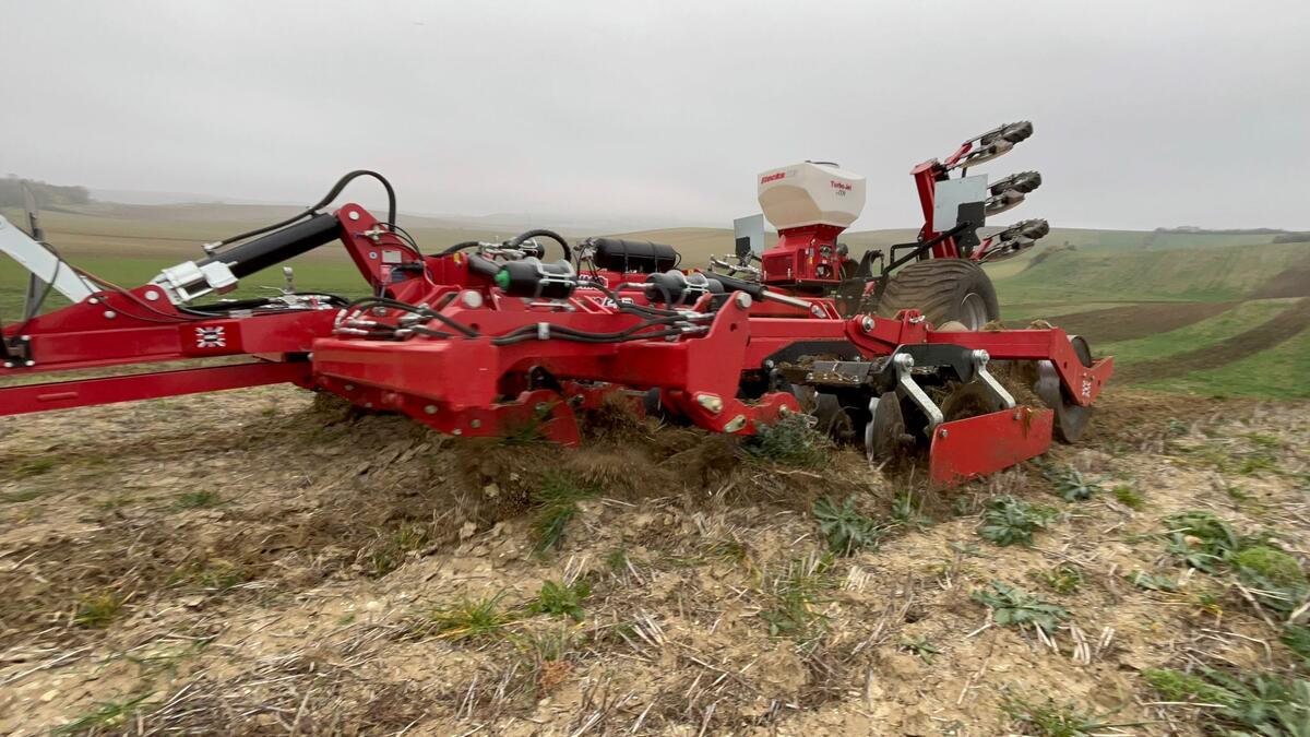 Kombinovaný stroj na vertikální zpracování půdy v tažené verzi.
